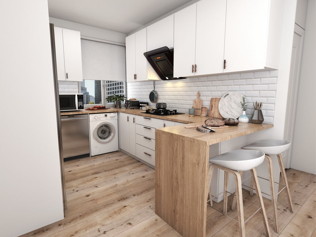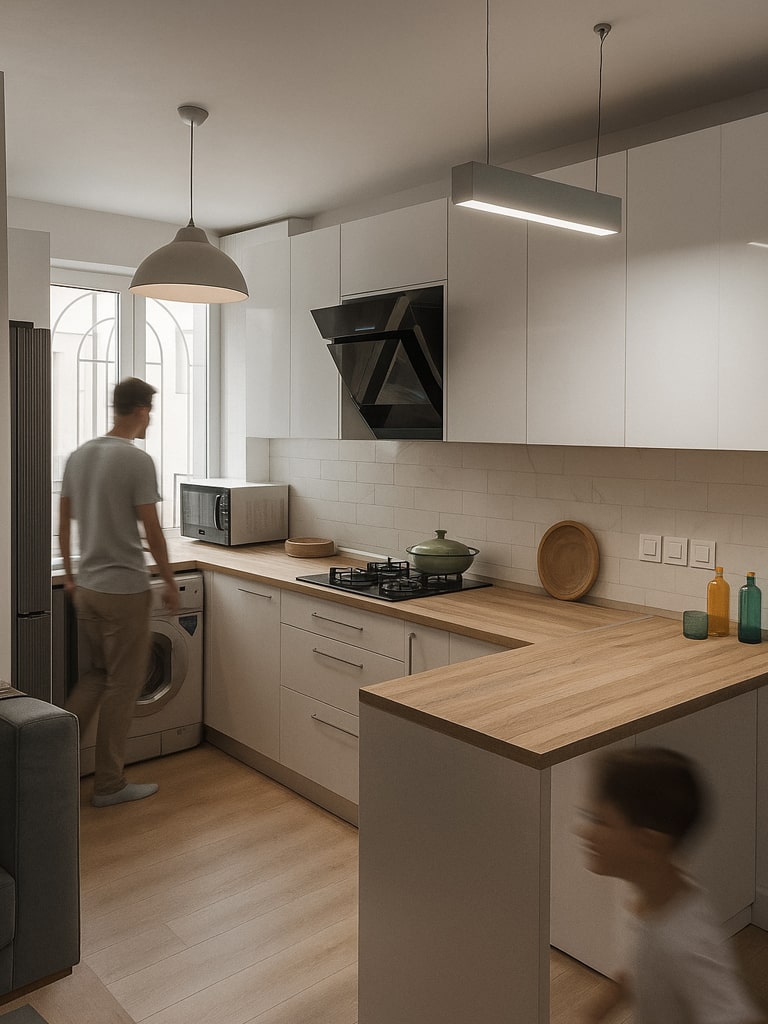 This small kitchen was designed with a focus on space optimization to create a functional, simple, and inviting environment. Through smart layout planning and the use of light color tones, the limited kitchen area has been utilized to its fullest potential. Durable, high-quality materials paired with modern appliances not only enhance longevity but also ensure comfort and ease of use. Appropriate lighting and minimalistic details create a calm and organized space that supports the kitchen’s efficient operation.